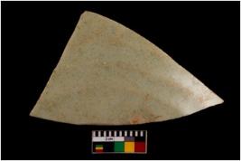 | Description / विवरण | Specimen of potsherd of glazed ware; the surface is highly smooth and glossy. It shows traces of geometric decoration. |