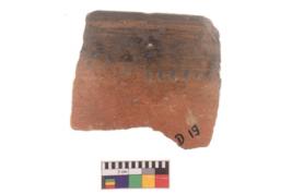 | Description / विवरण | Specimen of black on red ware with traces ofdecorative geometric Short strokes design painting. |