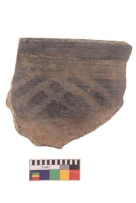 | Description / विवरण | Specimen of black on red ware with decorative geometric A groups lines pattern traingles and diamonds painting. |