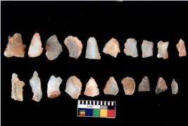 | Description / विवरण | There are n 20 of worked flakes. They have bulge of percussion and some are flat flakes. Few have broken tip. |