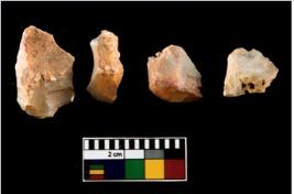 | Description / विवरण | There are n 4 of utilized worked cores. They show multidirectional irregular scar pattern. One is tapering on one end. |