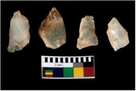 | Description / विवरण | There are n 4 of utilized worked cores. They show multidirectional irregular scar pattern and are tapering one one end. |