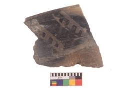| Description / विवरण | Specimen of black on red ware with decorative geometric Registers of flag design painting. |