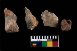| Description / विवरण | There are n 4 of utilized worked cores. They show multidirectional irregular scar pattern. Two are tapering on one end. |