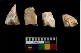 | Description / विवरण | There are n 4 of utilized worked cores. They show multidirectional irregular scar pattern. One is tapering on one end. |