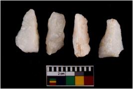 | Description / विवरण | There are n 4 flake cores. All of them are fully fluted flake cores without any trace of crested ridge flakes. Some are tapering at one end and some have sharp edges. |