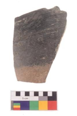 | Description / विवरण | Specimen of black on red ware with traces of decorative geometric wavy lines painting. |