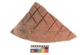 | Description / विवरण | Specimen of potsherd with decorative geometric graffiti over the surface. |