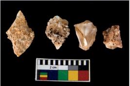 | Description / विवरण | There are n 4 of utilized worked cores. They show multidirectional irregular scar pattern. One is tapering on one end. |