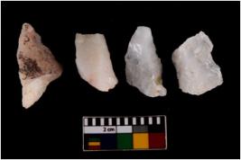 | Description / विवरण | There are n 4 flake cores. All of them are fully fluted flake cores without any trace of crested ridge flakes. Some are tapering at one end and some have sharp edges. |