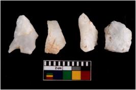 | Description / विवरण | There are n 4 flake cores. All of them are fully fluted flake cores without any trace of crested ridge flakes. Some are tapering at one end and some have sharp edges. |