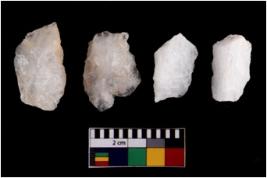 | Description / विवरण | There are n 4 flake cores. All of them are fully fluted flake cores without any trace of crested ridge flakes. Some are tapering at one end and some have sharp edges. |