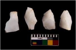 | Description / विवरण | There are n 4 flake cores. All of them are fully fluted flake cores without any trace of crested ridge flakes. Some are tapering at one end and some have sharp edges. |