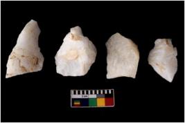 | Description / विवरण | There are n 4 flake cores. All of them are fully fluted flake cores without any trace of crested ridge flakes. Some are tapering at one end and some have sharp edges. |