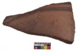 | Description / विवरण | Specimen of black on red ware with decorative geometric Plant motif painting. |