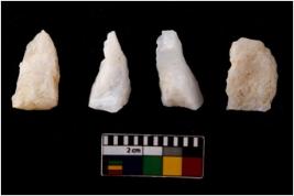 | Description / विवरण | There are n 4 flake cores. All of them are fully fluted flake cores without any trace of crested ridge flakes. Some are tapering at one end and some have sharp edges. |