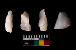 | Description / विवरण | There are n 4 flake cores. All of them are fully fluted flake cores without any trace of crested ridge flakes. Some are tapering at one end and some have sharp edges. |