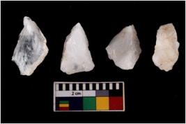 | Description / विवरण | There are n 4 flake cores. All of them are fully fluted flake cores without any trace of crested ridge flakes. Some are tapering at one end and some have sharp edges. |