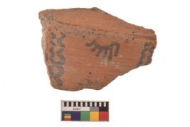 | Description / विवरण | Specimen made up of well levigated clay, having smooth and glossy surface with geometric Wavy lines and Sun motif painting. |