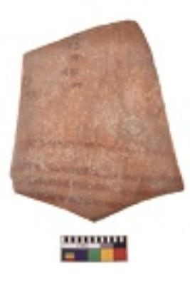 | Description / विवरण | Specimen of red on red ware with decorative geometric Four parallel lines painting. |