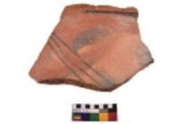 | Description / विवरण | Specimen of black on red ware with decorative geometric Three sets of oblique bands painting. |