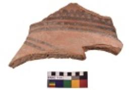 | Description / विवरण | Specimen of black on red ware with decorative geometric A row of arches over a horizontal band and oblique lines painting. |
