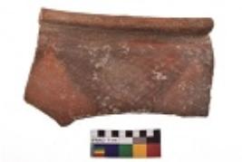 | Description / विवरण | Specimen of black on red ware with decorative geometric Latticed loops set in two horizontal bands painting. |