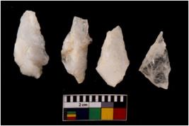 | Description / विवरण | There are n 4 flake cores. All of them are fully fluted flake cores without any trace of crested ridge flakes. Some are tapering at one end and some have sharp edges. |