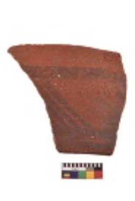 | Description / विवरण | Specimen of black on red ware with decorative geometric Outcurved lines painting. |