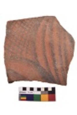 | Description / विवरण | Specimen of black on red ware with decorative geometric Net motif and curve lines painting. |
