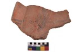 | Description / विवरण | Specimen of black on red ware with decorative geometric Plant motif painting. |