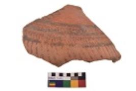 | Description / विवरण | Specimen of black on red ware with decorative geometric A double row of arches over a horizontal band and oblique lines painting. |