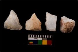 | Description / विवरण | There are n 4 flake cores. All of them are fully fluted flake cores without any trace of crested ridge flakes. Some have flat base. Some have sharp edges and some have blunted edges. |