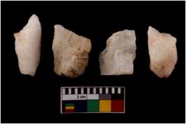 | Description / विवरण | There are n 4 flake cores. All of them are fully fluted flake cores without any trace of crested ridge flakes. Some are tapering at one end and some have sharp edges. |