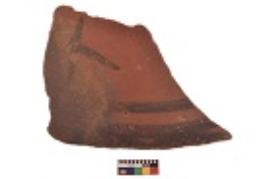 | Description / विवरण | Specimen of black on red ware with decorative geometric Two horizontal lines and Y shape design painting. |