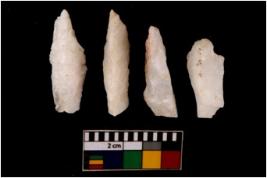 | Description / विवरण | There are n 4 flake cores. All of them are fully fluted flake cores without any trace of crested ridge flakes. Some are tapering at one end and some have sharp edges. |
