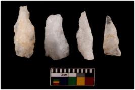 | Description / विवरण | There are n 4 flake cores. All of them are fully fluted flake cores without any trace of crested ridge flakes. Some are tapering at one end and some have sharp edges. |