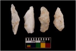 | Description / विवरण | There are n 4 flake cores. All of them are fully fluted flake cores without any trace of crested ridge flakes. Some are tapering at one end and some have sharp edges. |
