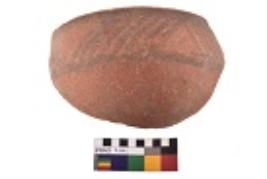 | Description / विवरण | Specimen of black on red ware with decorative geometric Groups of oblique strokes set in horizontal bands on the exterior painting. |