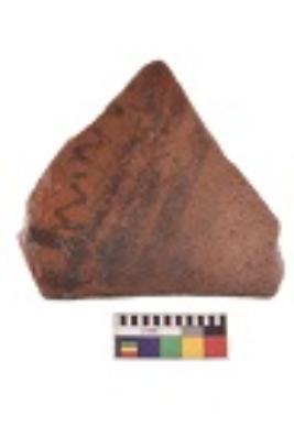 | Description / विवरण | Specimen of black on red ware with decorative geometric A row of arches over a horizontal band painting. |