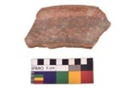 | Description / विवरण | Specimen of black on red ware with decorative geometric Two horizontal bands containing criss-cross pattern painting. |