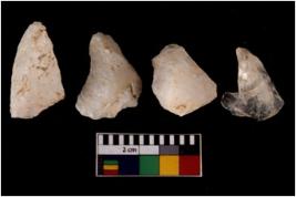 | Description / विवरण | There are n 4 flake cores. All of them are fully fluted flake cores without any trace of crested ridge flakes. Some have flat base. Some have sharp edges and some have blunted edges. |