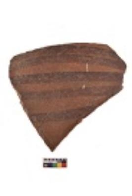 | Description / विवरण | Specimen of black on red ware with decorative geometric Its decorated with two horizontal bands with sets of triple arches painting. |