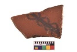 | Description / विवरण | Specimen of black on red ware with decorative geometric An oblique line with arches painting. |