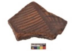 | Description / विवरण | Specimen of black on red ware with decorative geometric Vertical lines and net motif painting. |