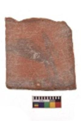 | Description / विवरण | Specimen of black on red ware with decorative geometric A crane motif painting. |