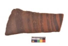 | Description / विवरण | Specimen of black on red ware with decorative geometric parallel lines painting. |