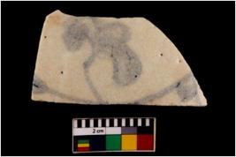 | Description / विवरण | Specimen of potsherd of glazed ware showing floral painting. |