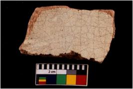 | Description / विवरण | Specimen of potsherd of glazed ware; it shows multiple cracks on its surface. |