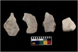 | Description / विवरण | There are n 4 flakes tool; there are flakes tool with prominent flaking marks. It made up of a large flakes with sides trimmed. |